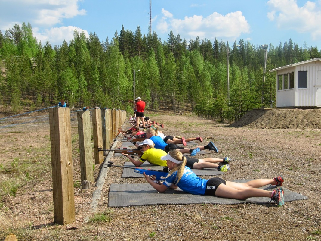 Kesäharjoituskauden 2014 ensimmäinen valmennusleiri pidettiin Jämillä 23.-25.5. loisto-olosuhteissa. Leiri toteutettiin yhdessä Ampumahiihtoliiton läntisen aluevalmennusryhmän kanssa näin saaden mukavasti lisättyä keskinäistä kilpailua mm. ammuntaharjoituksissa. Mukana oli myös vanhempia urheilijoita näyttämässä mallia, missä vanhemmissa sarjoissa mennään ja miten he käyttävät arvokkaat leiripäivänsä tehokkaasti! Ohjelma pyrittiin leirille rakentemaan siten, että harjoituksia olisi monipuolisesti ja ase olisi mukana mahdollisimman paljon; tavoitteena tehdä tärkeitä alkukesälle ominaisia harjoitteita. Viikonlopun kruunasi auringonpaiste ja lämmin sää, joiden siivittämänä taisi monelta lähteä viimeistään tässä vaiheessa talviturkki! Seuraavista leireistä tulee infoa, kunhan saan taas sopimukset kuntoon. Hyvää kesää urheilijoille ja tukijoukoille! - Miika |